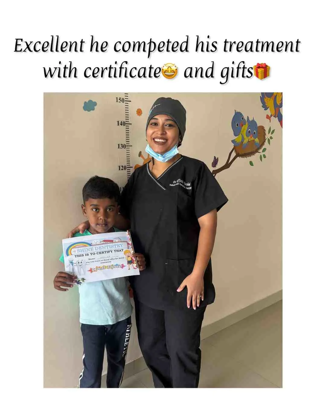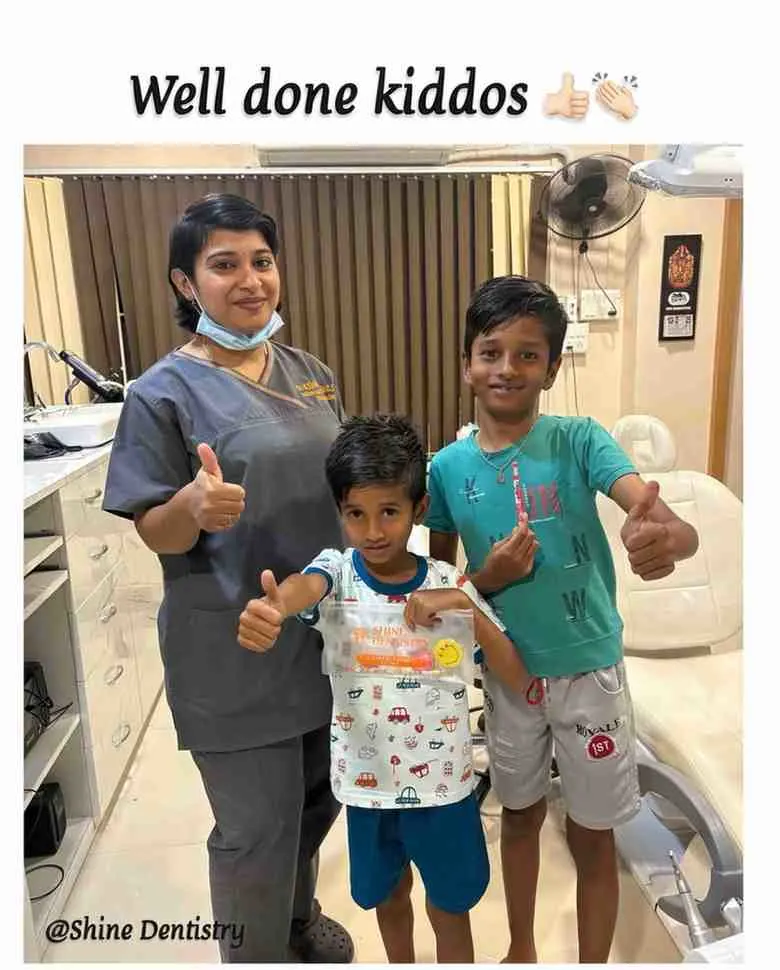 At Shine Dentistry, our child-friendly dental environment and our dedicated kids specialist, Dr. R. Kirthi Varshini, M.D.S. (Pediatric Dentist), makes each dental appointments comfortable and enjoyable for kids by using painless injection techniques (Nitrous Oxide - Laughing Gas) along with distraction techniques like cartoons and Kids shows played on large screen monitors during dental treatment procedures. Our kids dentist passionately treat kids with gentle care, helping them overcome dental fear with ease.
